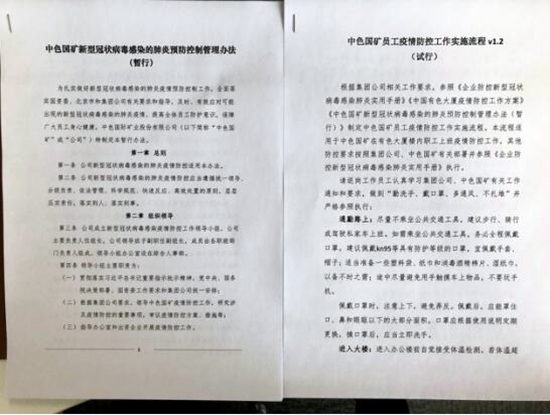 中色國礦建章立制加強(qiáng)疫情防控工作 中色國礦編撰了《新型冠狀病毒感染的肺炎預(yù)防控制管理辦法》和《疫情防控工作實施流程》等相關(guān)制度辦法,為節(jié)后上班疫情防控提前做好安排。面對疫情可能對生產(chǎn)經(jīng)營可能產(chǎn)生的影響,制定了工作預(yù)案,提前做好境外物資采購渠道備份溝通。積極響應(yīng)集團(tuán)公司倡議,迅速組織員工捐款捐物,為疫情防控貢獻(xiàn)力量。